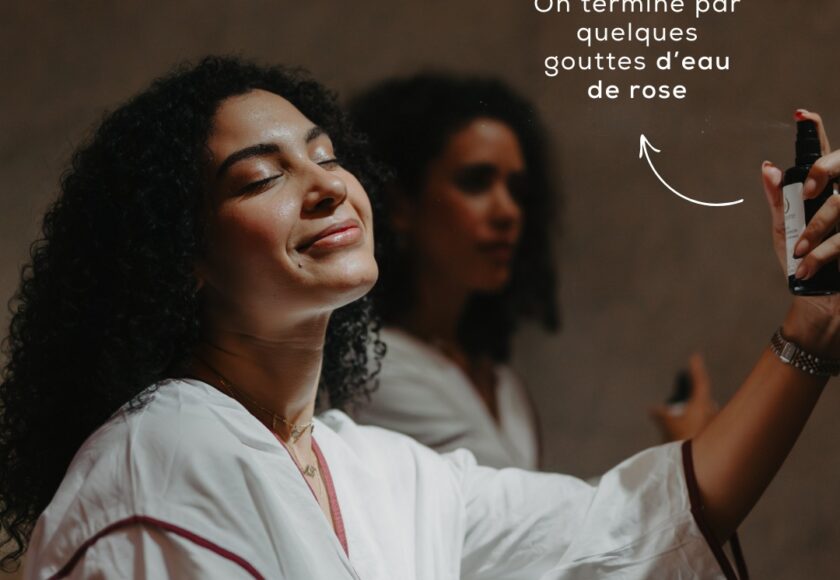 - 肌がしっとりした段階で、アルガンオイルを1〜2滴手のひらに広げる